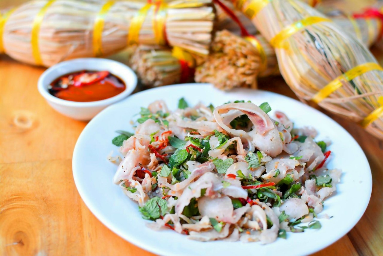 Another popular dish is banh xeo tom nhay, a crispy Vietnamese savory pancake often made with fresh local shrimp. Travelers who want something more filling can also try banh hoi with grilled pork, which is easy to share and widely appreciated by visitors.