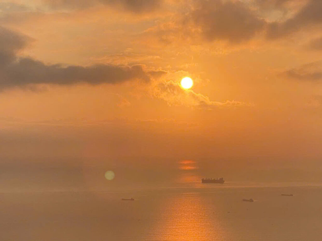 - sunrise or sunset with everyday coastal life