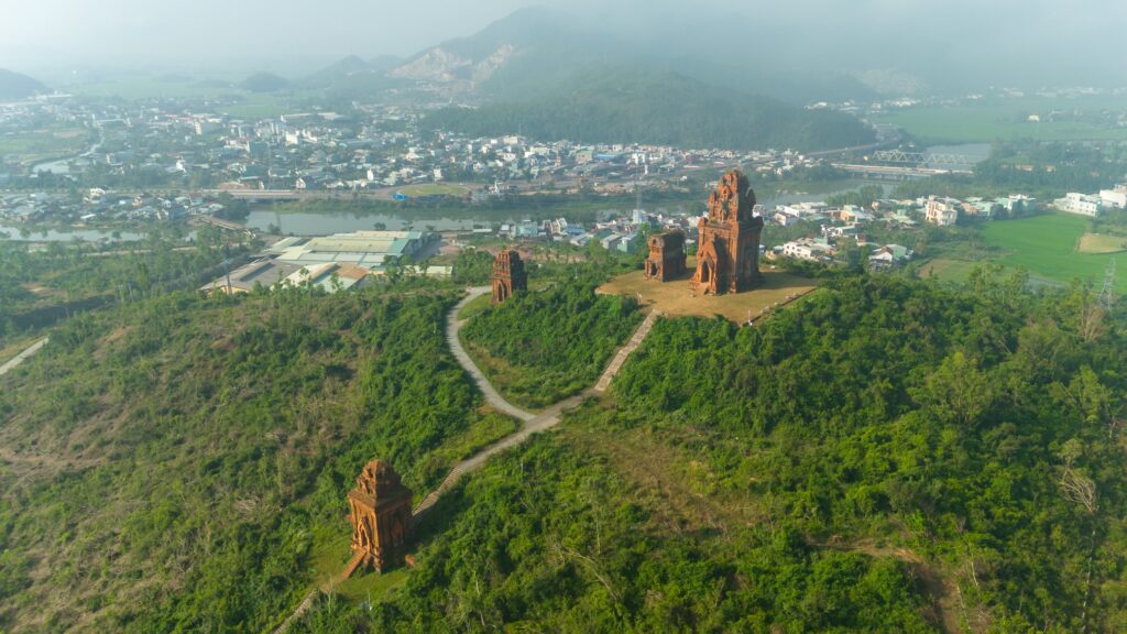 Among heritage sites near the city, Banh It Towers stand out. Official tourism information dates the complex to the late 11th and early 12th centuries. Vietnam Airlines also describes it as a hilltop site about 20 kilometers from Quy Nhon, with four Cham towers and broad surrounding views.