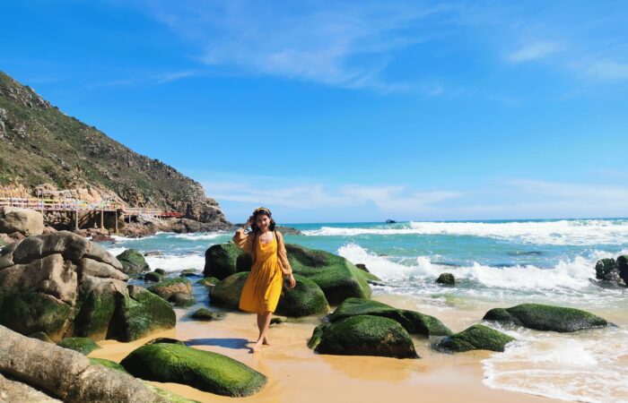 Just beyond the stone embrace of the cliffs awaits Kỳ Co, the “Hidden Pearl” of the East Sea. Imagine waters so impossibly clear they appear as liquid sunlight, dancing over sands of pure ivory. This isn’t just a destination; it’s a sanctuary of vibrant coral gardens and silent, turquoise bays.